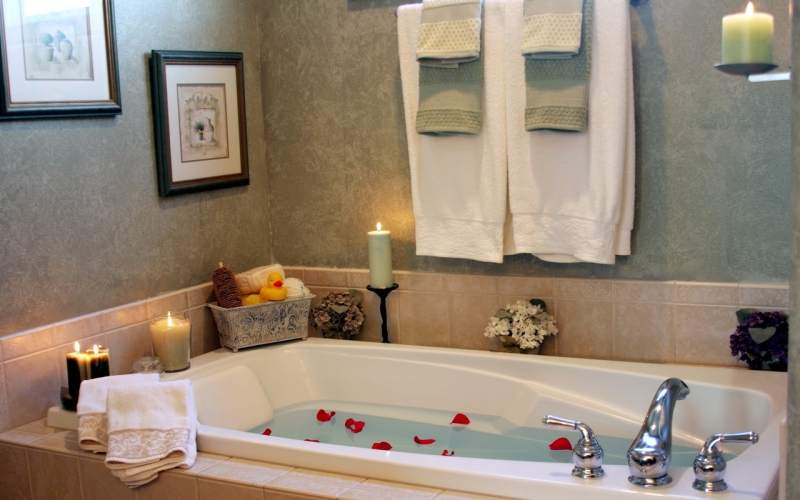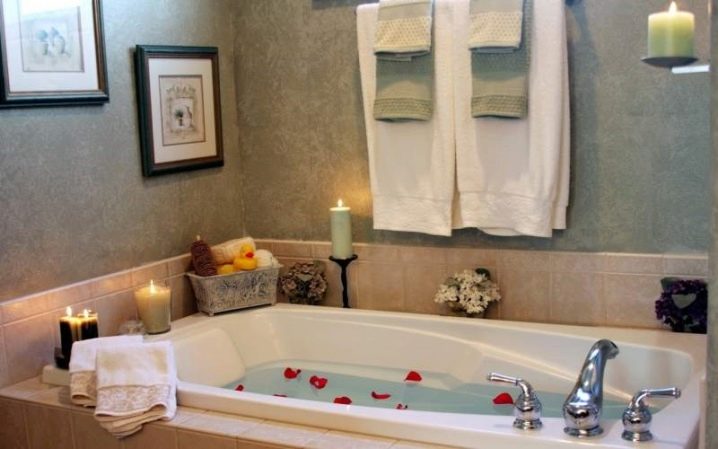 Romantisches Bad mit einem floralen Thema kann mit abwaschbaren Beschichtungen dekoriert werden.