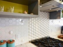 Im Gegensatz zu den Reliefs bieten flache Fliesen die Möglichkeit, Sauberkeit zu erzielen und die Oberfläche bei Bedarf mit herkömmlichen Reinigungsmitteln zu reinigen.Aber die Reliefoberfläche wird unvermeidlich Schmutz von der Verdunstung über dem Ofen und Kalk von Feuchtigkeit sammeln.