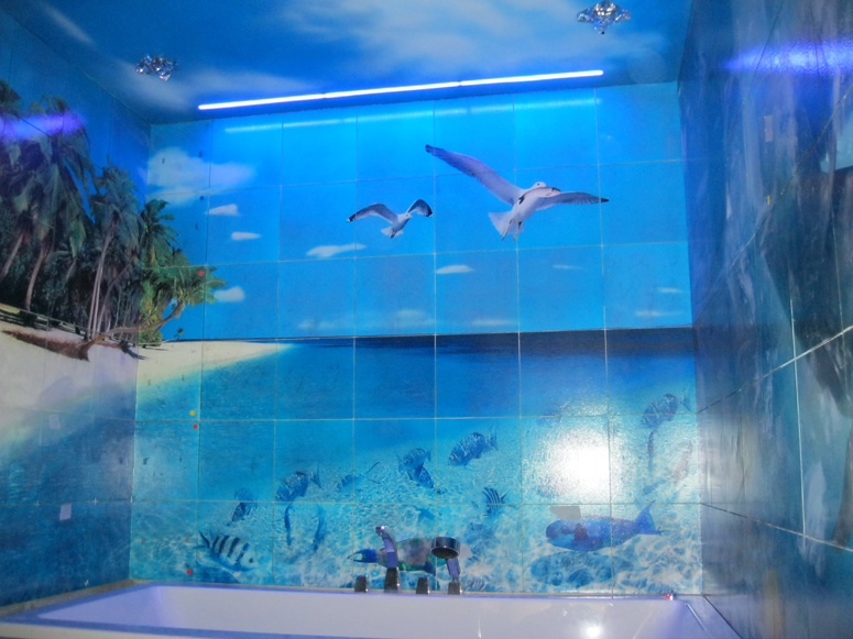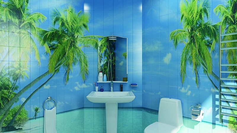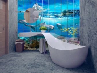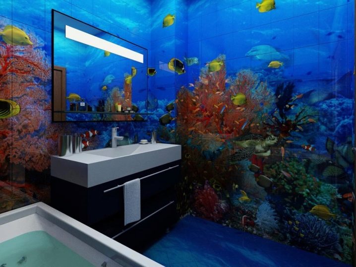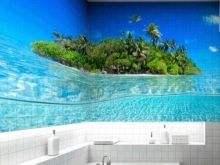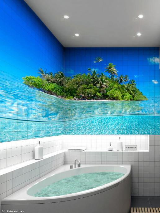 Es ist wahrscheinlich schwierig, einen geeigneteren Ort für eine wundervolle Welt zu finden, die durch eine mehrdimensionale Stereofliese als ein Badezimmer geschaffen wird.Hersteller bieten eine große Auswahl an Optionen für Meer und Strand, und diese Produkte sind gefragt. Und es ist nicht verwunderlich, denn es ist so angenehm, sich an der sonnigen Küste unter Palmen zu fühlen oder mit Korallen und Goldfischen in die faszinierende Unterwasserwelt einzutauchen.