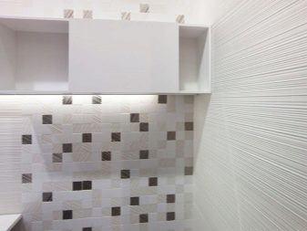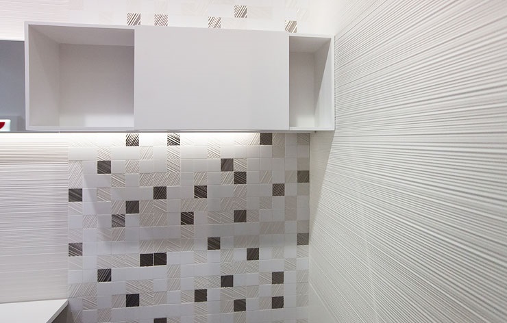 Verdunstende Feuchtigkeit setzt sich in den Falten des Reliefs in Form einer Kalkschicht ab, die nicht nur das Aussehen der Beschichtung beeinträchtigt, sondern auch Bakterien und Pilze verursachen kann. Aus praktischen Gründen wird es daher in einem kleinen Badezimmer besser sein, eine Glas-Stereo-Kachel oder 3D-Keramik zu wählen.