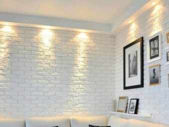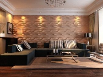 Eine wellenförmige Reliefplatte schmückt den Sitzbereich im klassischen Wohnzimmer, während die Imitation von Mauerwerk für stilvolle Loft-Innenräume geeignet ist.