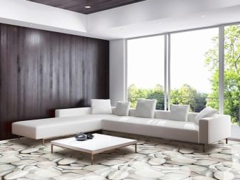 Aber im Wohnzimmer, Schlafzimmer, Flur geprägte Oberfläche wird luxuriös aussehen. Ein großes konvexes Muster verleiht dem geräumigen Raum des Badezimmers oder Pools in einem privaten Haus einen besonderen Chic, dekorieren Sie den Kamin im klassischen Wohnzimmer mit edlen Noten.