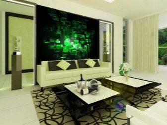Silber mit einer beliebigen Farbe aus der Palette wird das Wohnzimmer im Stil von Hi-Tech und Minimalismus schmücken.