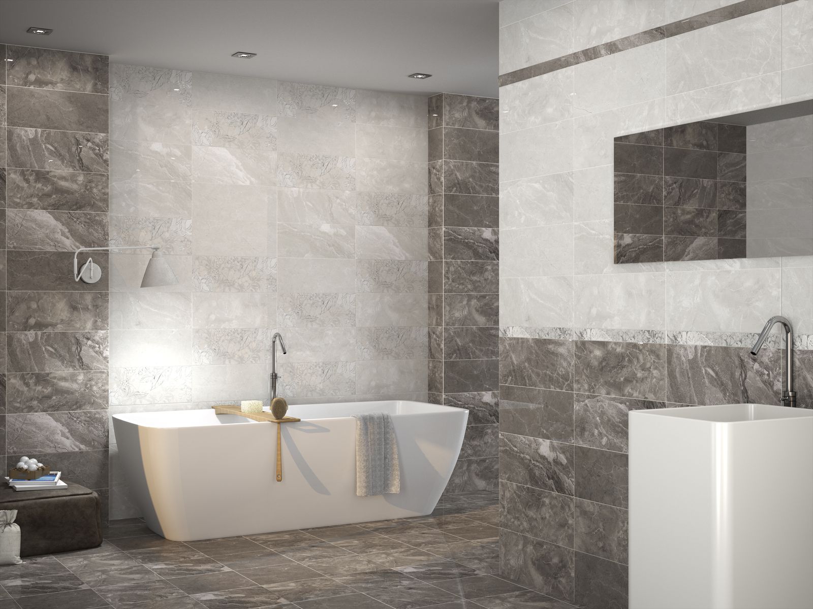 Auch keramische Produkte haben unterschiedliche Formen und Größen. Designer des Unternehmens verwenden einen speziellen Ansatz, einschließlich mehrerer Fliesengrößen in einer Linie, so dass das Layout ein ungewöhnliches und modernes Aussehen haben kann.