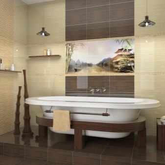 - Ethno - Fliesen, im ethnischen Stil gemacht, ist beliebt bei der Gestaltung von Badezimmern. Der betrachtete Stil zeichnet sich dadurch aus, dass er Elemente der Kultur verschiedener Nationen beinhaltet.