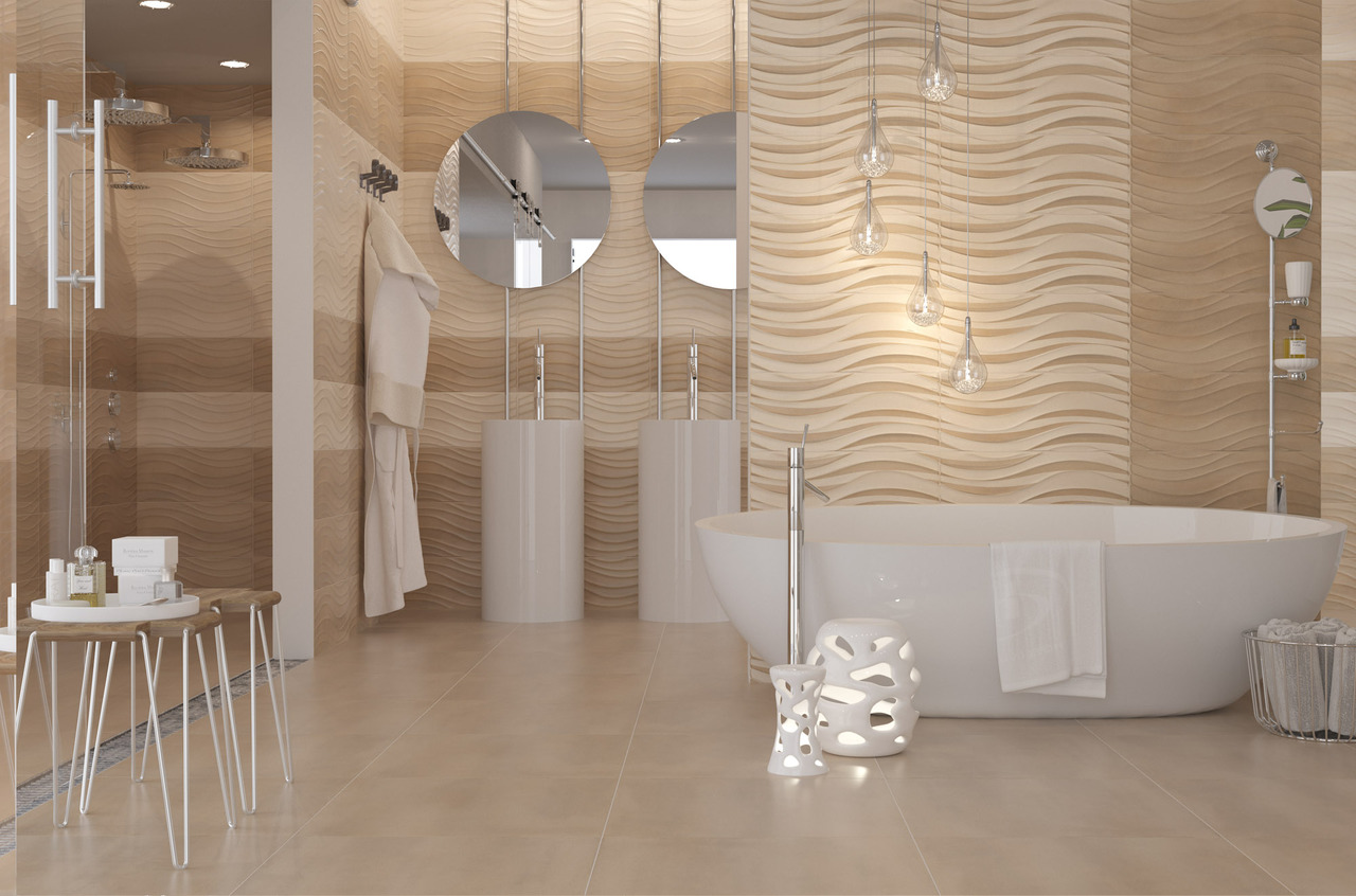 - Düne - Eine Linie, die die Aufmerksamkeit aller auf sich ziehen wird, weil sie sich durch Premium auszeichnet. Facing ist in bräunlichen und cremefarbenen Tönen gemacht, es sieht ziemlich teuer aus. Diese Linie ist gut für Badezimmer.