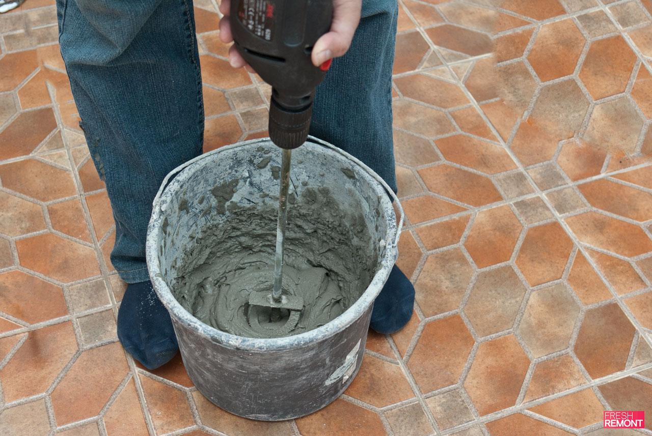 Wenn Sie die Fliese auf einen warmen Boden kleben müssen, zusätzlich Latexlatex auf Latexbasis einmischen.