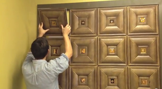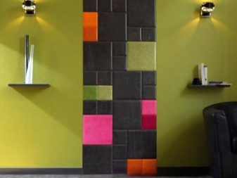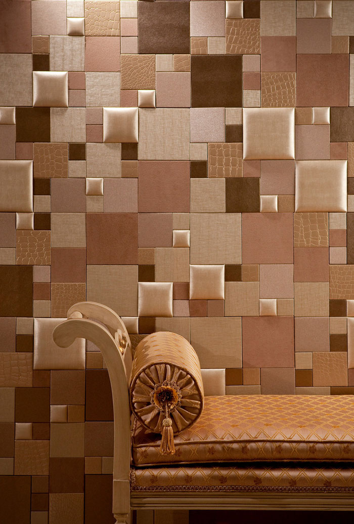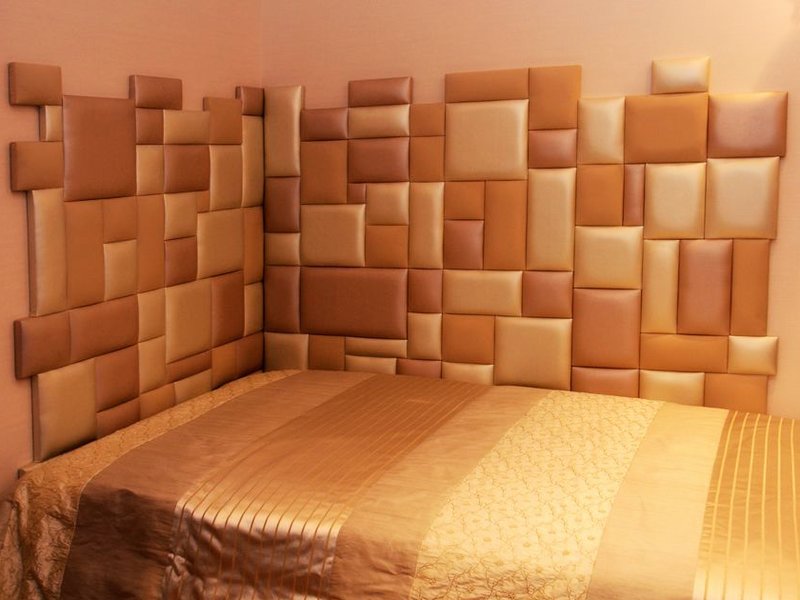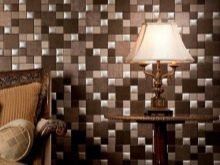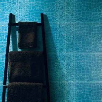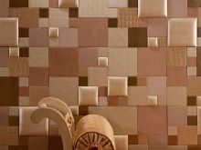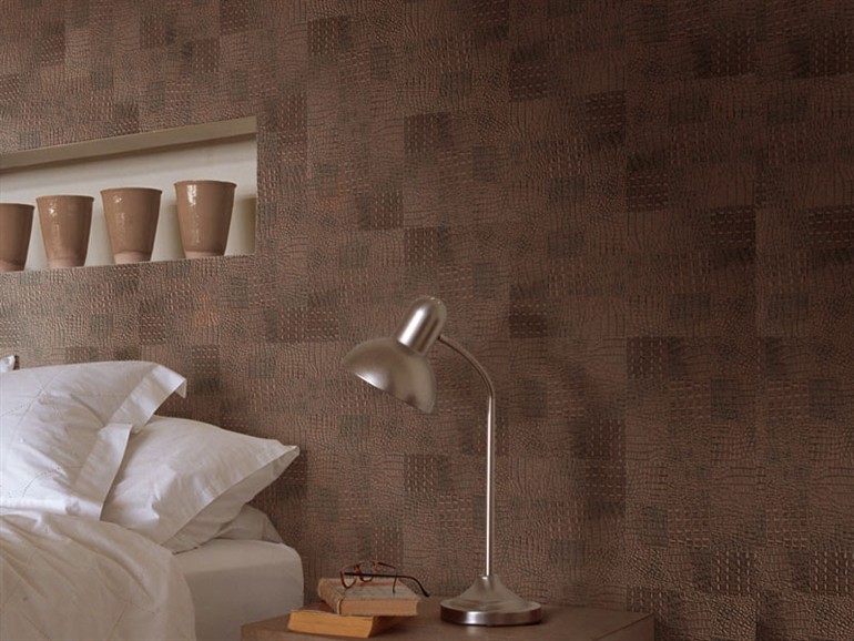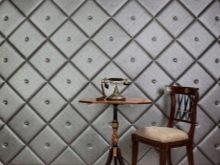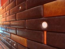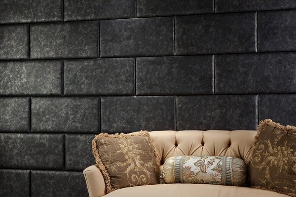Für die Wände werden hauptsächlich dreischichtige Lederprodukte mit einer Basis aus Pappe oder Zellulose verwendet. Wandfliesen aufgrund der dreischichtigen Struktur hat eine voluminöse Oberfläche. Das Volumen der Beschichtung ergibt die mittlere Schaumschicht. Die Lederoberfläche der Fliese kann Materialien wie Metall, Holz oder Stoff nachahmen.