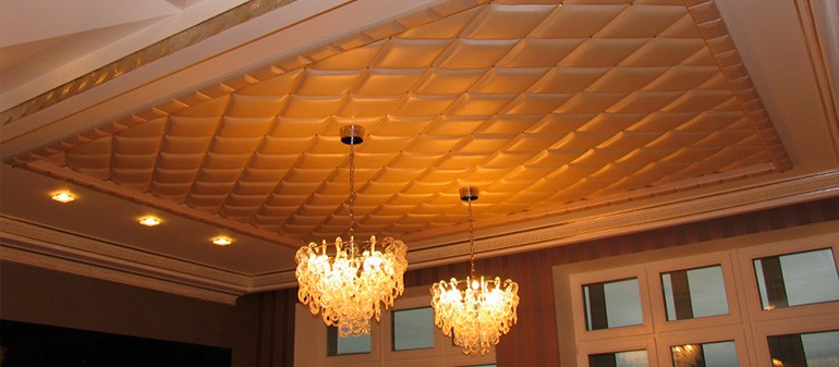 Für die Verkleidung der Decken werden die Ledermodelle selten verwendet, jedoch erzeugen die Hersteller für solche Veredelungen die feinsten Modifikationen der Fliesenprodukte.