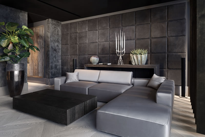 - Lederplatten können nur eine Wand im Raum bedecken und betonen;