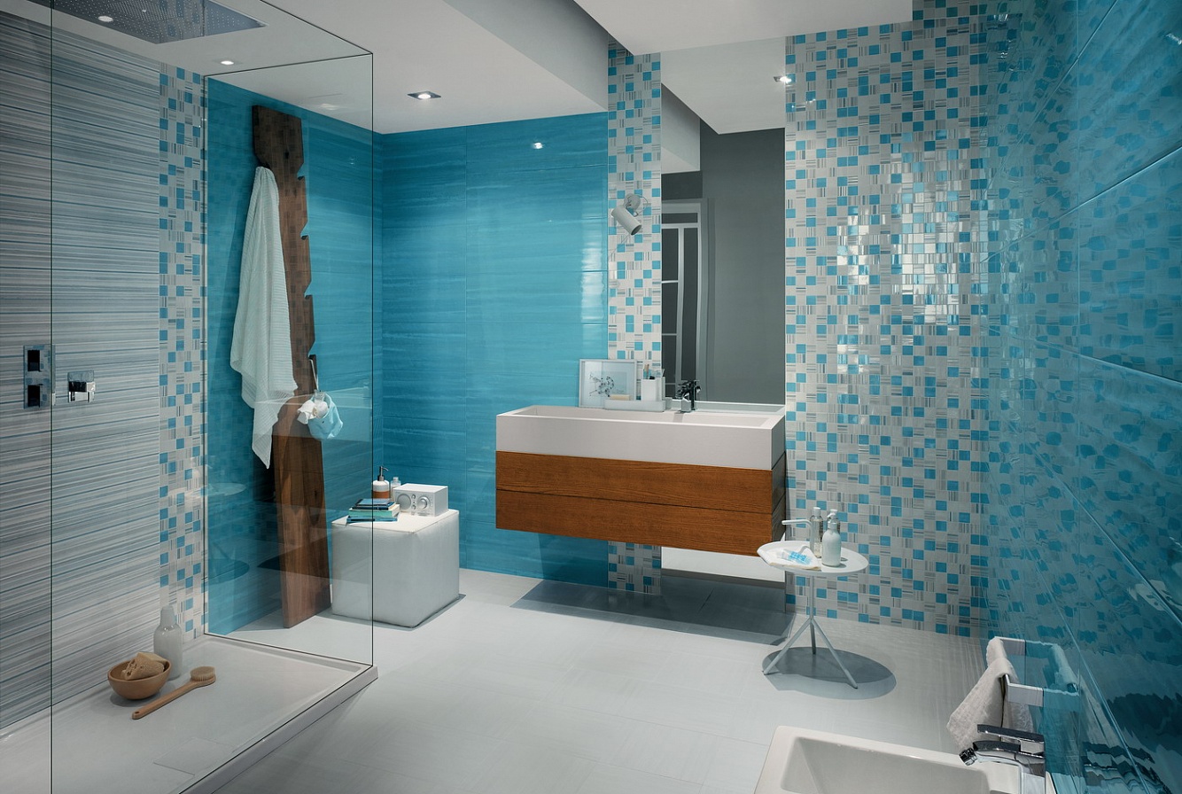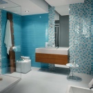 Viele Verbraucher glauben, dass solche Fliesen zu hell und aufdringlich Farben sind, die Sie schnell müde werden können. Vielleicht war es das erste Mal, aber heute in den Geschäften finden Sie ganz ruhige und neutrale Materialien, die keine Irritationen verursachen, aber sie tragen zur Entspannung des Haushalts im Badezimmer bei.