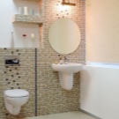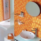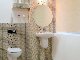 - Vergessen Sie nicht die Inneneinrichtung des Badezimmers. Wenn im Raum viele verschiedene Farbtöne vorhanden sind, empfiehlt es sich, mehr gedämpfte Mosaike für die Verkleidung zu erwerben.