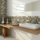 Die Palette der schönen Fliesen für das Badezimmer ist heute in ihrer Vielfalt auffallend. In Geschäften finden Sie Materialien in absolut beliebigen Farben und Farbtönen. Coatings sind nicht nur einfarbig, sondern auch mehrfarbig, perlmuttartig, glänzend, mit hellen Mustern oder Prints verziert. Eine der populärsten und beliebtesten im Moment recht erkannt Fliesen, unter dem Mosaik gemacht.