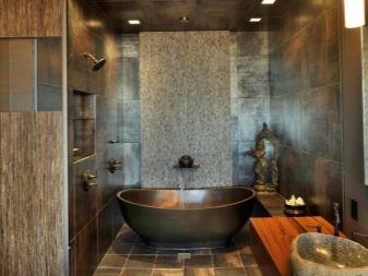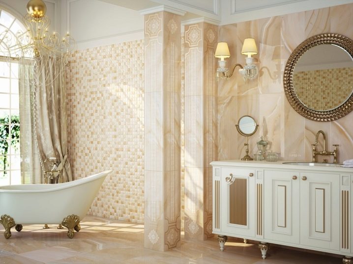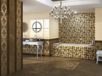 Solche Verblendmaterialien sind die ideale Wahl für diejenigen, die die üblichen und alltäglichen Interieurs satt haben. Mit diesem Design erhält das Badezimmer automatisch eine völlig andere und lebendigere Erscheinung. Dank der richtig gewählten Mosaikfliese können Sie das Dekor dekorieren, indem Sie Stil und Image radikal verändern.