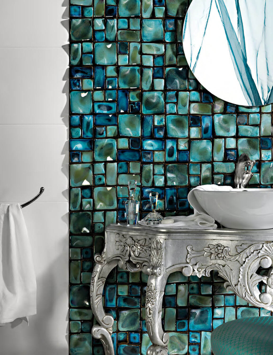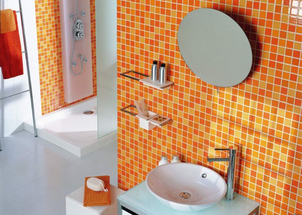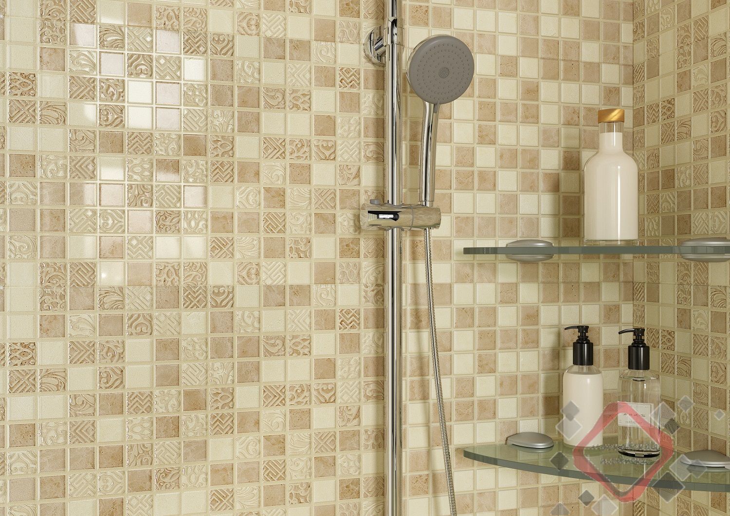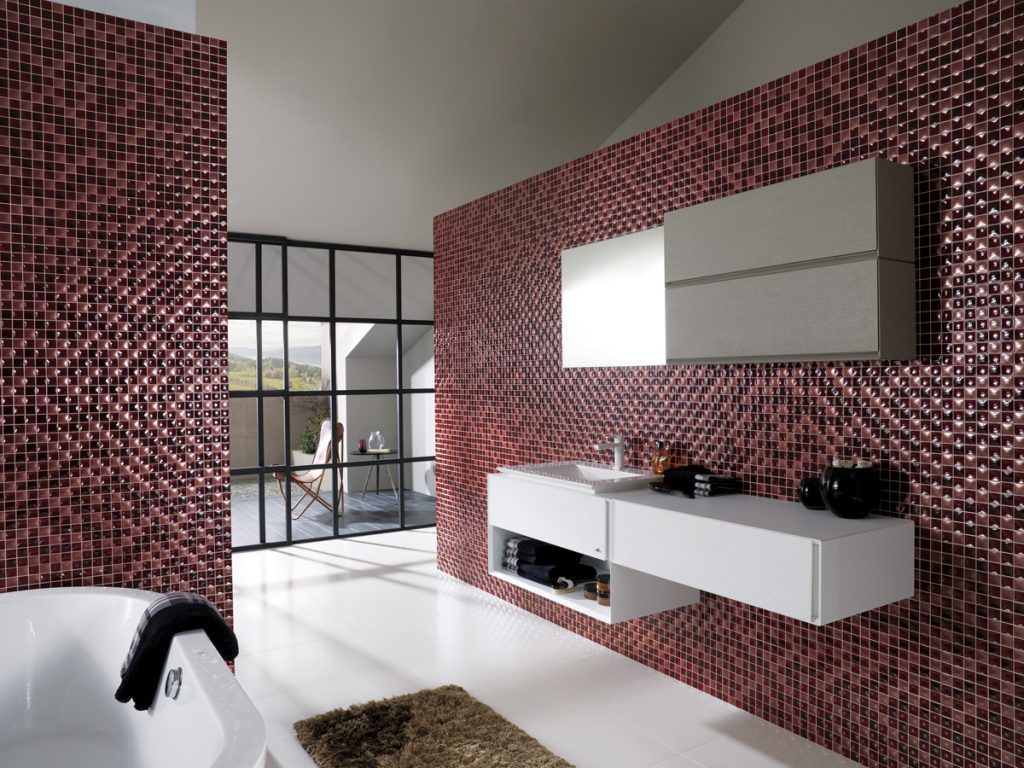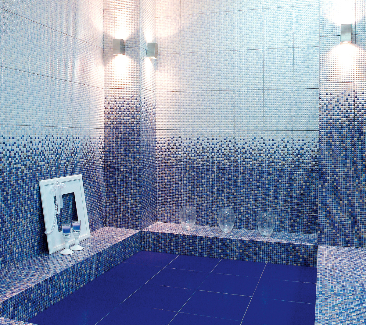 Mosaik für ein Badezimmer kann verschiedene Größen haben (von 1x1 bis 5x5 cm):