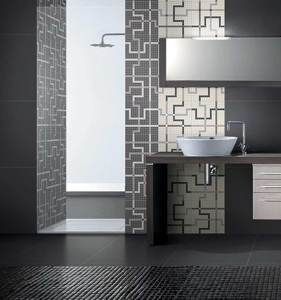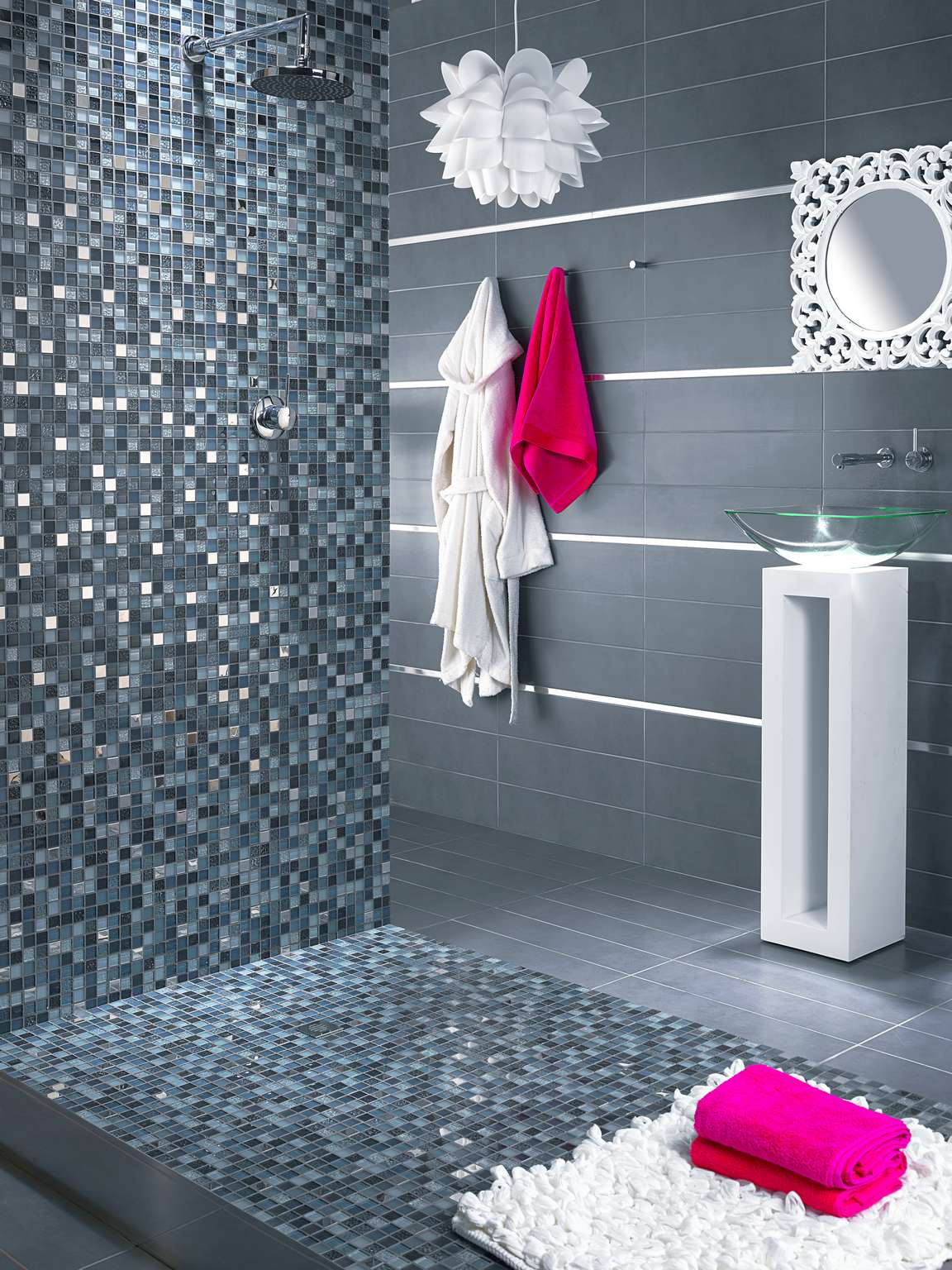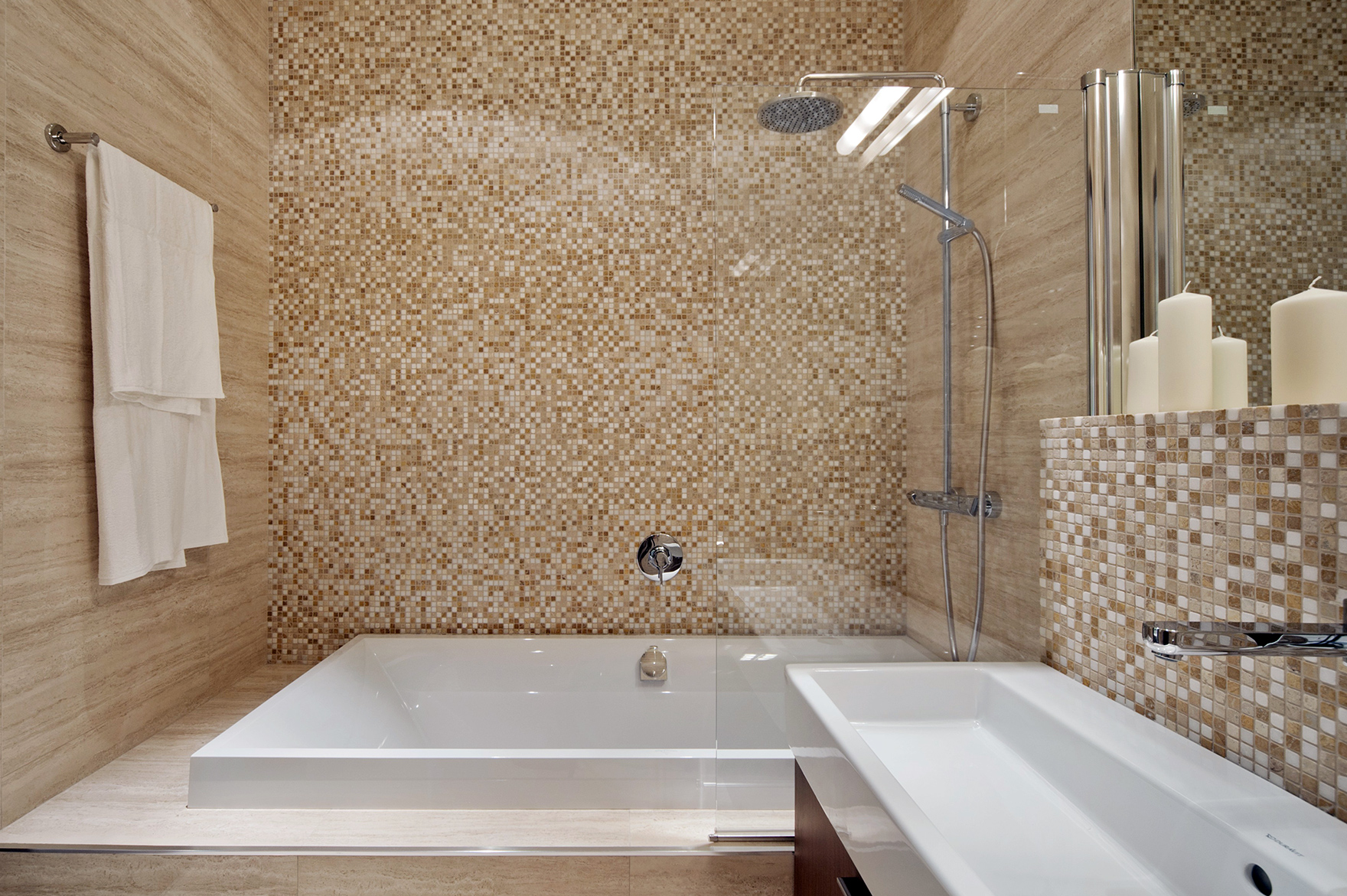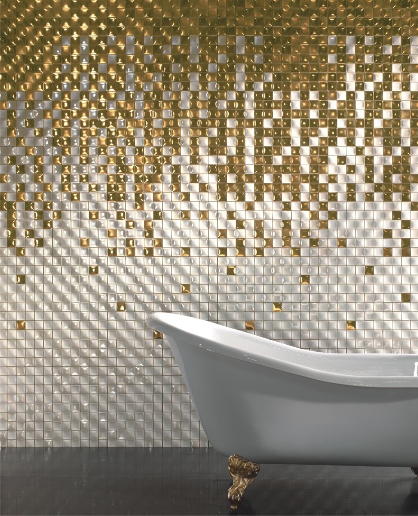 Mosaik für ein Badezimmer kann verschiedene Größen haben (von 1x1 bis 5x5 cm):