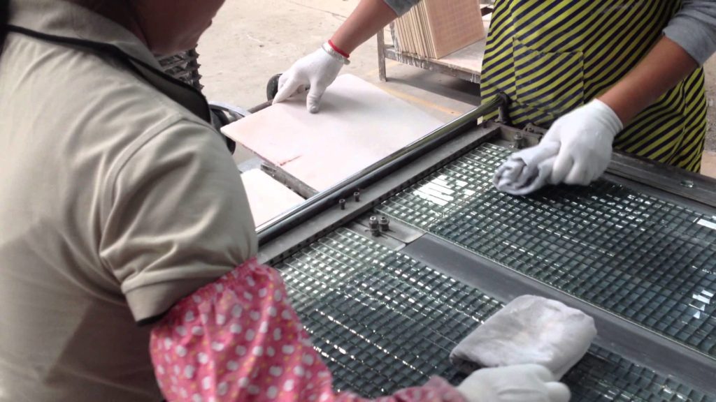 Um eine Auskleidung dieser Art zu erhalten, wird Schmelztechnologie verwendet. Der nächste Schritt ist das Stempeln. Auf der letzten Produktionsebene werden die erhaltenen Teile durch Brennen gehärtet. Die raffinierte Fliese aus Glas weist daher eine erhöhte Beständigkeit gegen mechanische Beschädigungen auf.
