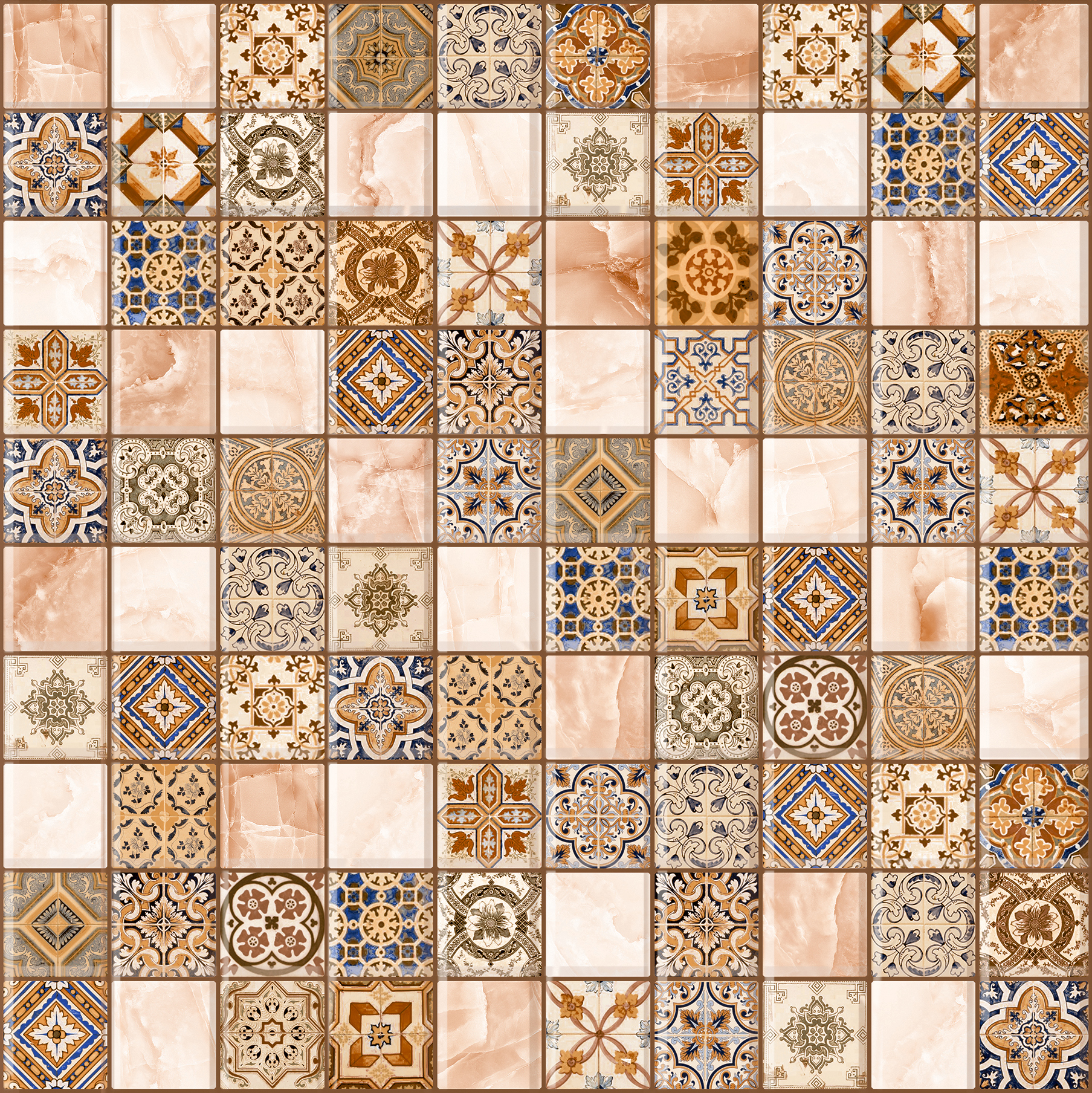 - ein paar weniger gebräuchliche Mosaike, die zu ganzen Blöcken zusammengesetzt sind und eine Fliese von 30x30 cm darstellen.