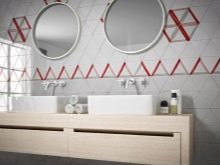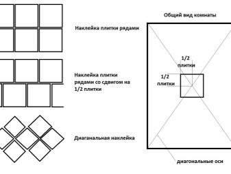 Wenn Sie Fliesen diagonal verlegen, können Sie sogar wesentliche Defekte in Boden und Wänden verbergenBei der Berechnung des Stapelns auf diese Weise ist es jedoch erforderlich, einen größeren Prozentsatz des Zuschneidens und Verschnitts zu verlegen: 15-17%, je nachdem, ob das Muster auf der Fliese angepasst werden muss. Eine besondere Option für die diagonale Platzierung von Fliesen ist ein Fischgrat. Für diese Anordnung gibt es zwei Möglichkeiten: Zum einen wird die erste Fliese parallel zu den Wänden gelegt und die Installation wird zur Diagonalen geführt. in der anderen verläuft die erste Platte schräg und die Verlegung erfolgt senkrecht zu den Wänden.