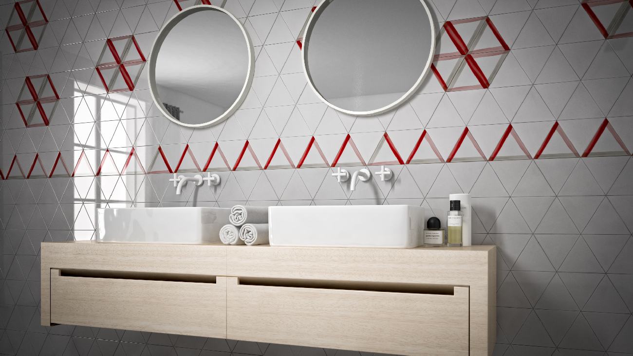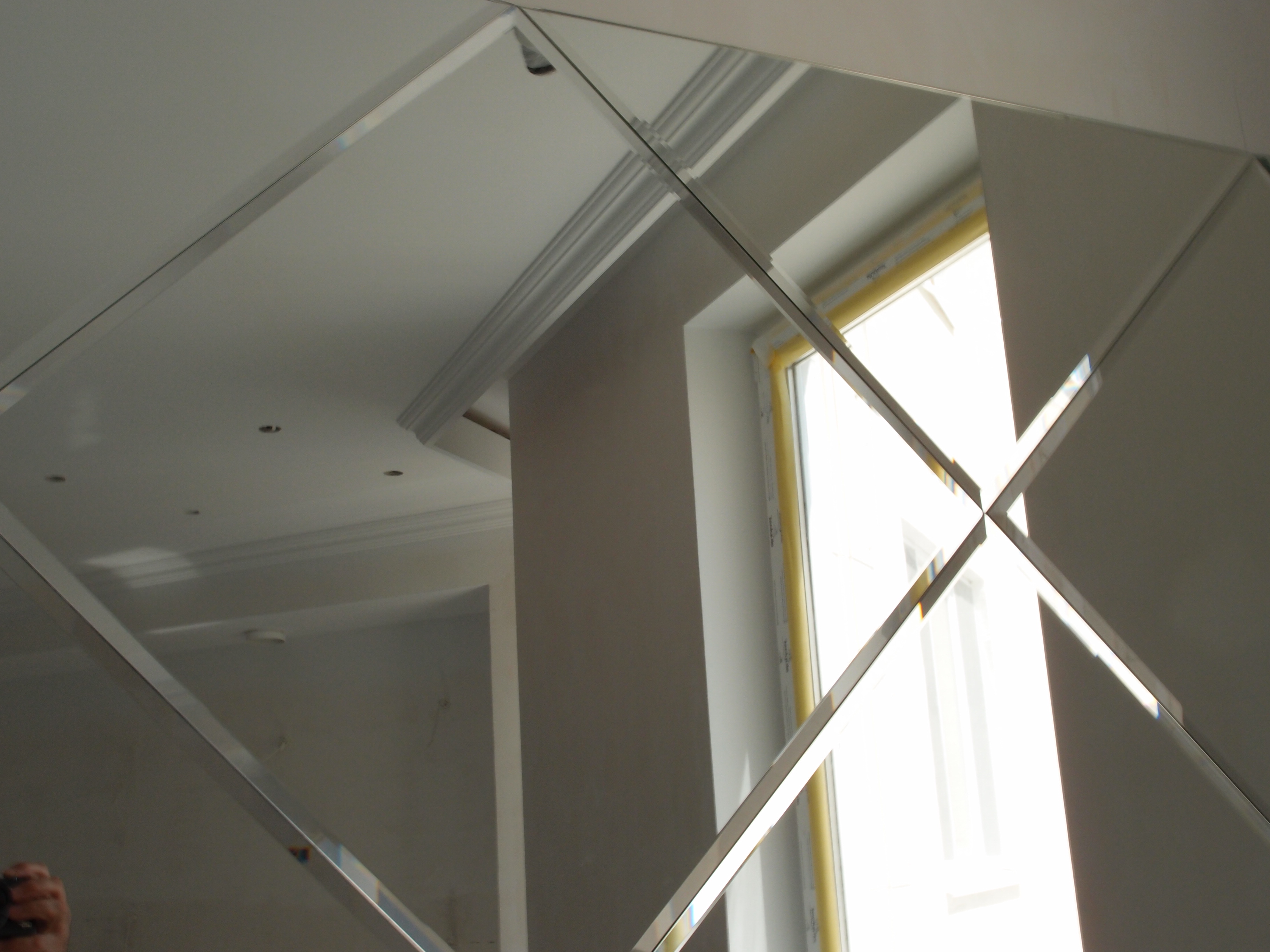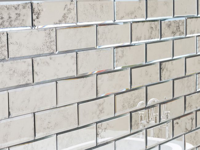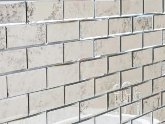 Eine separate Berechnungskomplexität wird angezeigt, wenn eine Kachel mit Facette verwendet wird. Facetten sind Abschrägungen, die sich um den Umfang der Fliese befinden. Solche Produkte wirken expressiver und voluminöser als gewöhnliche flache Quadrate.Besonders gute Facetten sehen auf der Fliese aus, die eine glatte Spiegelfläche hat. Eine mit solchen Fliesen ausgekleidete Wand erweitert optisch einen kleinen Raum und verteilt das Licht gleichmäßig um den Umfang. Die Schwierigkeit liegt in der Tatsache, dass diese Art von Fliesen nicht geschnitten werden kann, um das Aussehen nicht zu beeinträchtigen. Der Boden und die Ecken des Raumes sollten perfekt flach sein, und die Größe des Materials sollte so gewählt werden, dass nur eine ganze Anzahl von Quadraten von Fliesen erhalten wird.