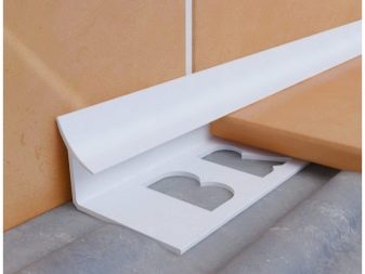 Um den Prozess der Fliesenverlegung zu beschleunigen und alle Vorsprünge und Nischen sorgfältig anzuordnen, können Sie Kunststoffecken verwenden. Sie sind an allen Stellen der Kreuzung der Wände und des Bodens, an den äußeren und inneren Ecken installiert. Diese Ecken sind in Längen von 2 m und 4 m erhältlich und in verschiedenen Farben erhältlich. Eine Seite des Kunststoffprodukts wird auf Fliesenkleber unter die Fliese gepflanzt, und die Kanten der Keramikfliesen kommen auf die zweite Seite, wodurch die Unebenheit von Schnitten und kleine Defekte der Facette verborgen werden können.