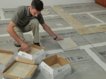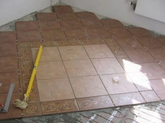Die einfachste Veredelungsoption ist die übliche quadratische Platte derselben Farbe oder mit einem inkompatiblen Muster (z. B. Marmor oder Holz). Wenn Sie ein solches Material verlegen, können Sie von jedem Winkel aus arbeiten und die Position der einzelnen Fliesen vor dem Auftragen des Klebstoffs nicht einstellen.