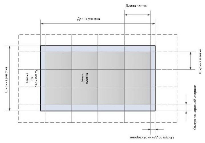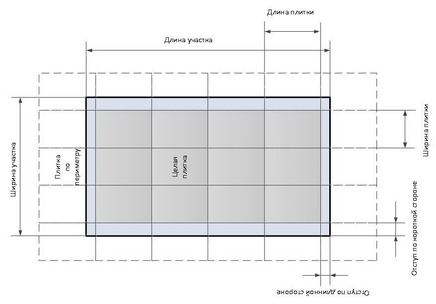 Eine andere Berechnungsoption ist genauer. Es ist notwendig, sofort die gesamte Fläche zu berechnen, auf der das Material eines Typs verlegt wird. Das erhaltene Ergebnis wird in den Bereich einer einzelnen Kachel der gewünschten Größe unterteilt und es ergibt sich die Anzahl der Kacheln, die diesen Bereich abdecken.