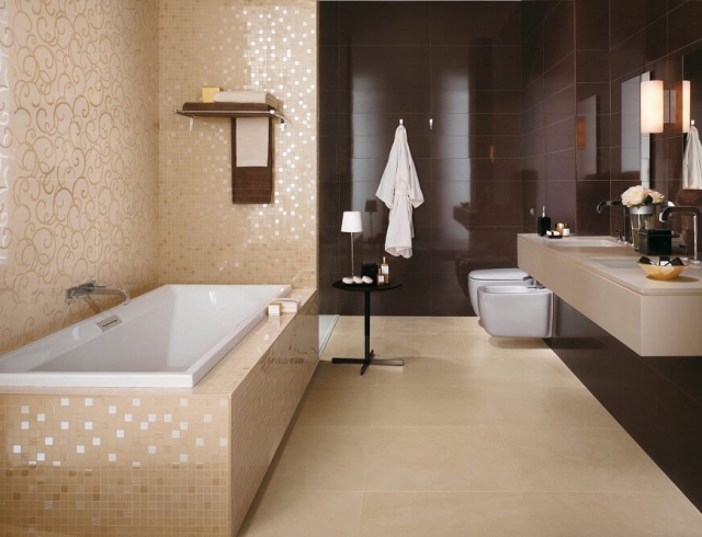 Für größere Einsparungen oder die Schaffung des ursprünglichen Designs des Badezimmers kann ausschließlich "Nasszone" ausgekleidet werden.In den Orten der ständigen Kontakt von Wasser mit den Wänden und Bodenfliesen ist verlegt, und der Rest der Oberfläche ist mit feuchtigkeitsbeständigen Farbe behandelt oder Kunststoffplatten installiert sind. In diesem Fall muss für die Berechnung nur der Bereich dieser "Nasszone" genommen werden.