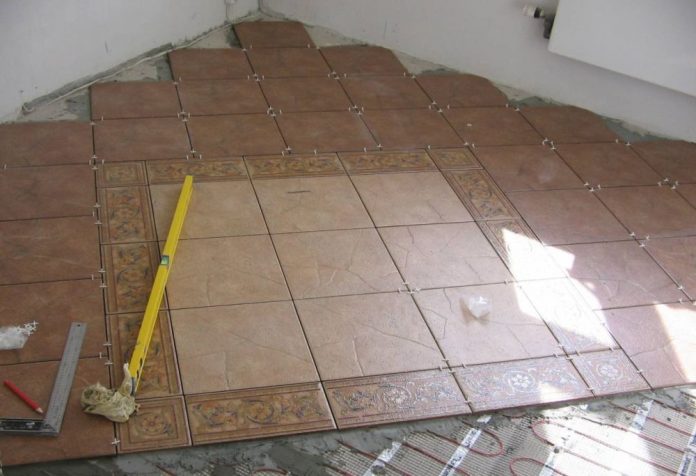 Um die Fliese genau genug für die gesamte Oberfläche zu machen, sollten Sie sofort ein wenig mehr kaufen., was sich nach der Berechnung ergab, da in einigen Teilen des Raumes die Fliesen zusammengefügt und geschnitten werden müssen, um das Ornament anzupassen.