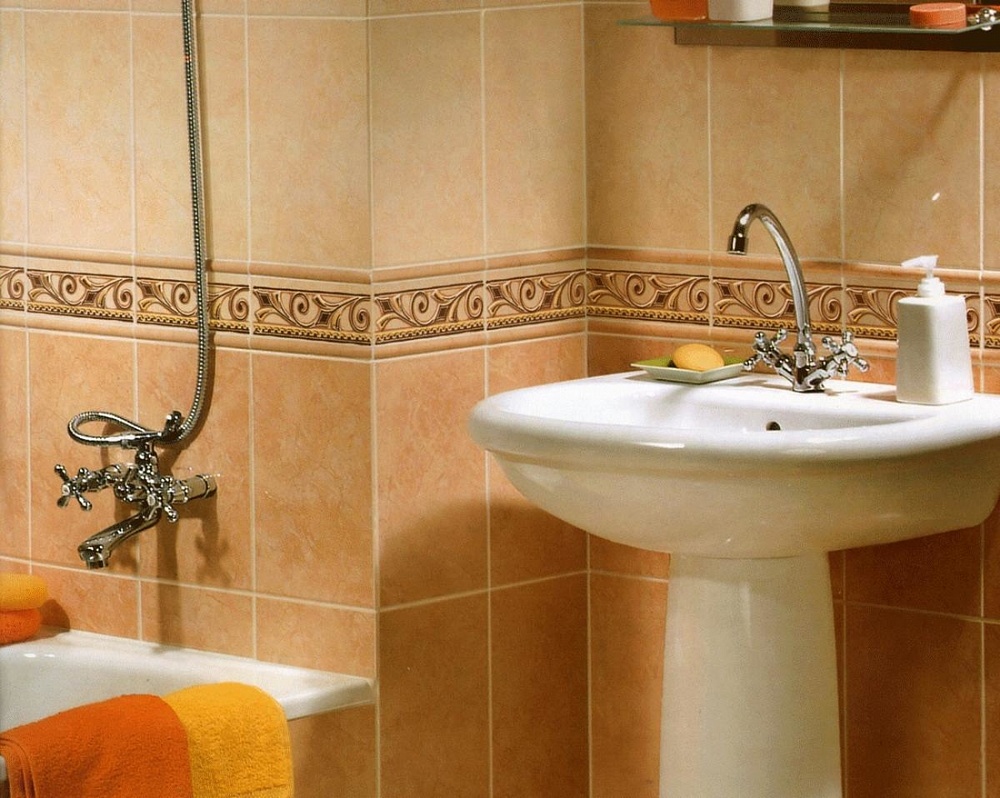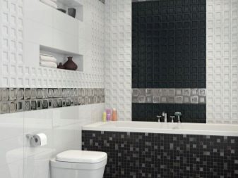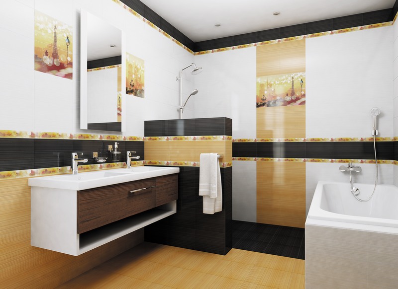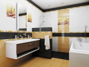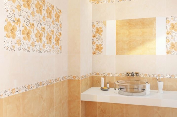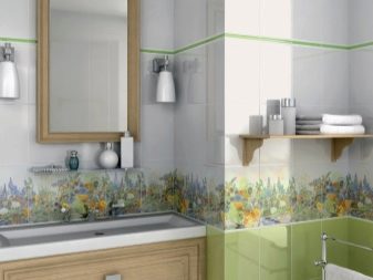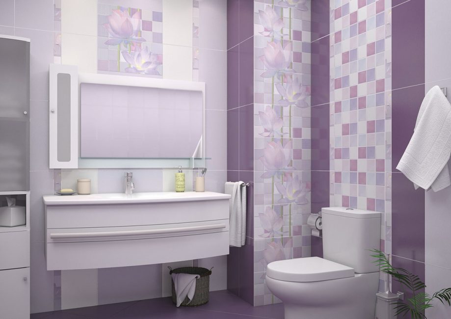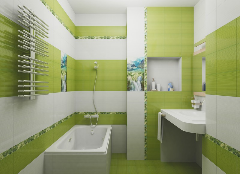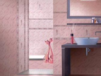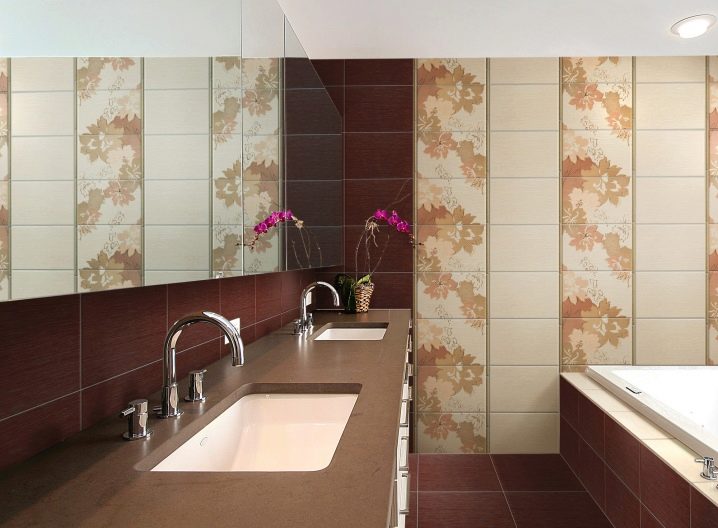 - Material mit Farbeinsätzen auswählen, denke sorgfältig über das Design nach. Eine erfolglose Anordnung des Bildes kann die Wand, auf der die Auskleidung hergestellt wird, visuell verfälschen.