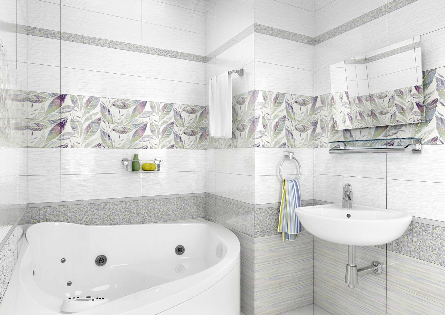 Sie können Wandfliesen vertikal und horizontal verlegen. Dies ermöglicht Ihnen, die Breite oder Höhe der Wände entsprechend der Entwurfsidee visuell zu erhöhen.