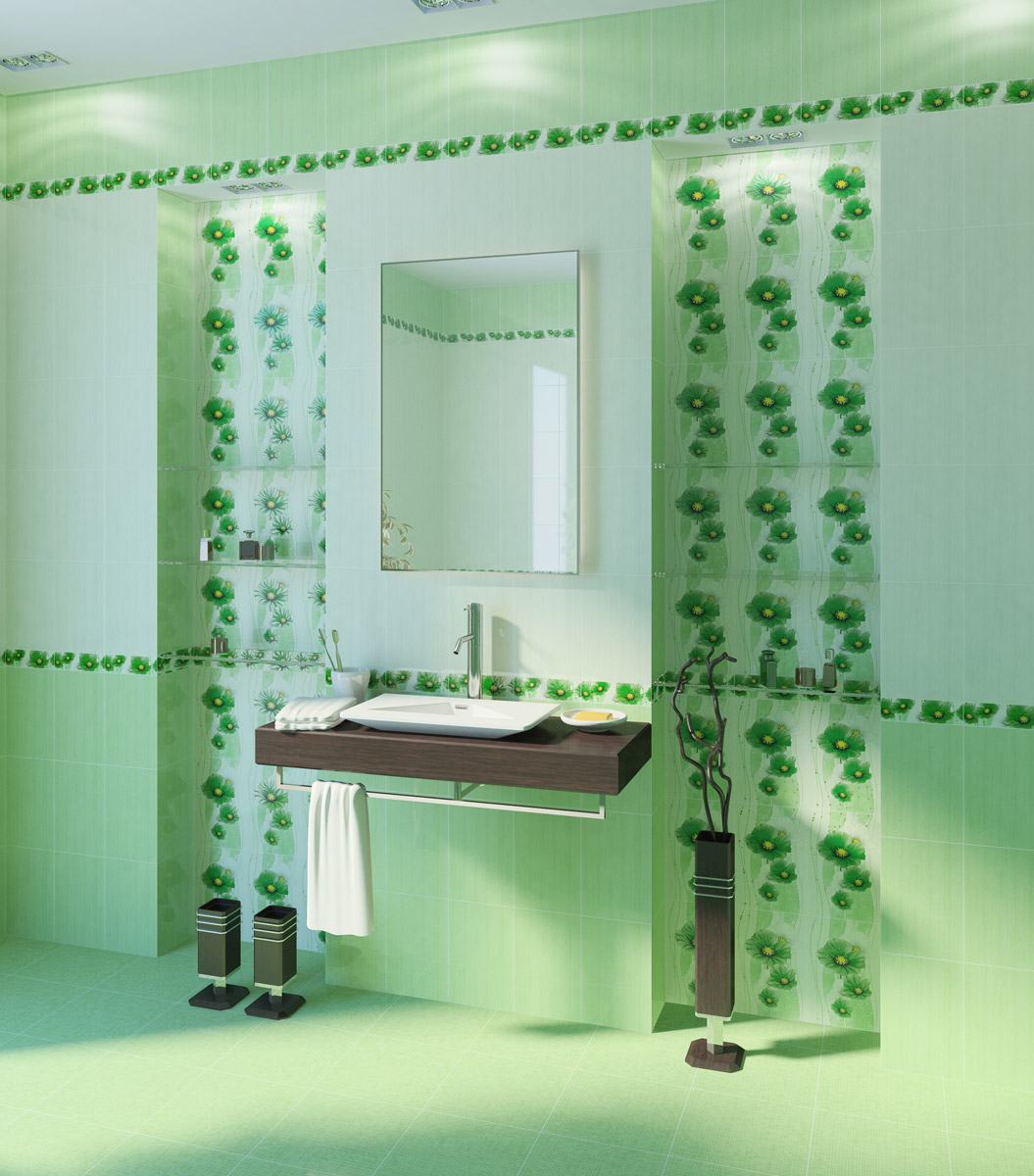 Für die Küche bietet eine strukturierte Vielfalt, Beige, Kaffee, Rosa und Pfirsich-Töne. Die Farben des Badfutters folgen hauptsächlich dem Thema Meer, obwohl heute neben den Blau- und Blaugrüntönen auch milchig-schokoladenbraun, creme-pink, smaragdgrün und einfarbig Varianten in der Dekoration der Paneele und Wände dieser Räume zu finden sind.