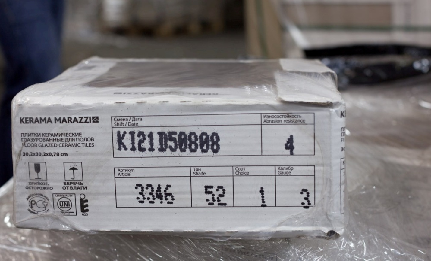 Allgemein, Die Box enthält alle notwendigen Informationen für den Käufer: der Name des Herstellers, der Name der Fliese selbst, die Anzahl der Quadratmeter in der Verpackung, die Größe (in Zentimetern), die Farben und die Anzahl der Produkte in Stücken.