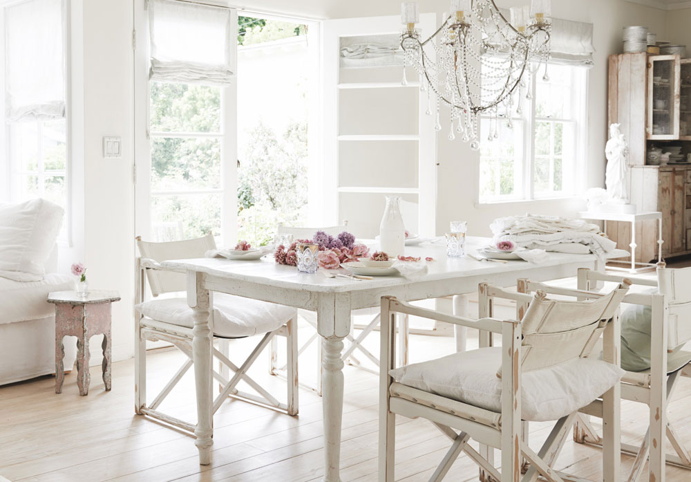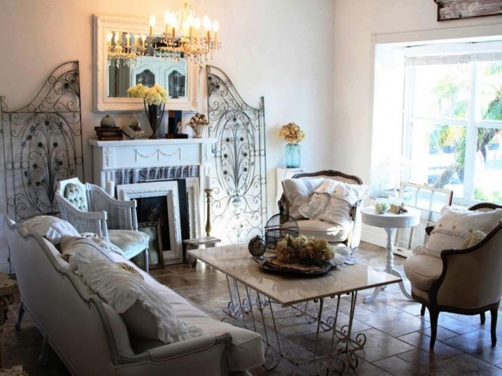 Das Interieur hat weiche Pastelltöne, edle Verfall der Wände, ausgefranste Fliesen, teure Böden, die Anwesenheit von Antiquitäten. Shebbi-Chic entlehnt das Beste der Provence, Barock, Retro, kombiniert Romantik, Komfort, Antike und Luxus. Er ist mit der Provence wegen des schlechten Haushalts verwechselt, aber im Gegensatz zu der hübschen Dorf-Unhöflichkeit neigt er zur Ästhetik.