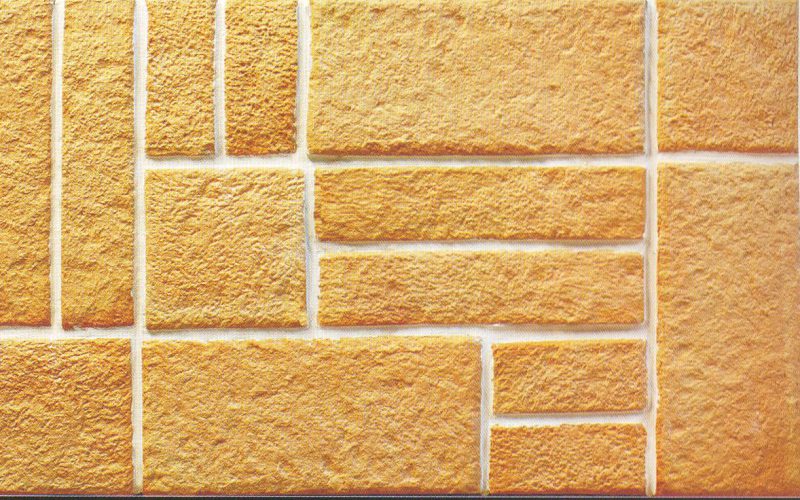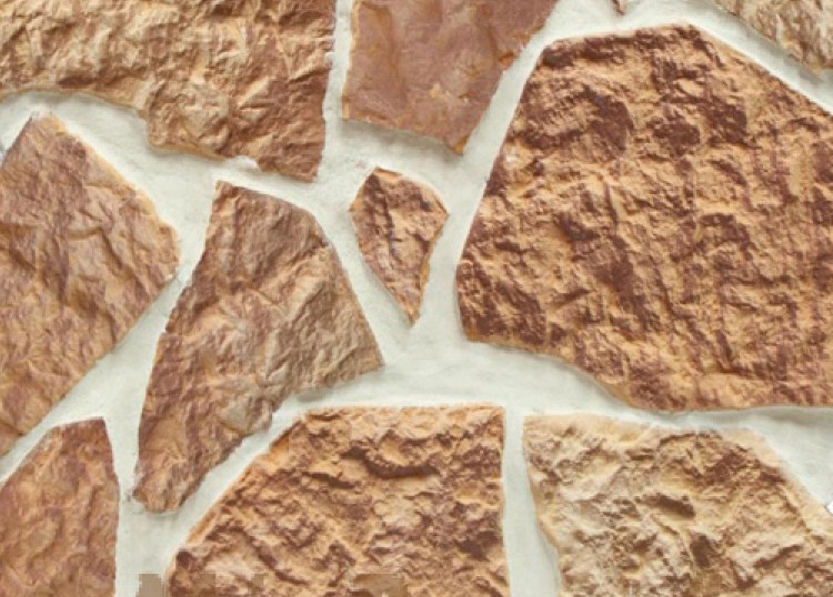 - "Zerrissener Stein", sowie "shamot", wird in drei Serien vorgestellt. Farbtöne können von beige bis rot gewählt werden. Die Textur ist uneben und imitiert natürlichen, grob behandelten Stein.
