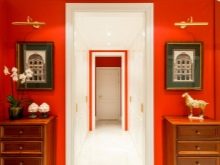 Der zweite wichtige Punkt bei der Farbauswahl ist die Helligkeitweil die Stimmung der Person davon abhängen wird. Zum Beispiel ist Rot ein ziemlich helles und sogar auffälliges Element in der Innenarchitektur, deshalb ist es aus emotionaler und ästhetischer Sicht nicht für jeden geeignet.Nach ein paar Tagen im roten Zimmer haben viele Menschen Kopfschmerzen, Ärger oder Wut. Rot gilt als eine harte Farbe für die Wahrnehmung, deshalb empfehlen Experten, es in Bereichen zu verwenden, in denen Hausbesitzer lange Zeit nicht gewohnt waren, insbesondere in der Diele, der Garderobe oder der Küche, aber in dosierten Mengen.