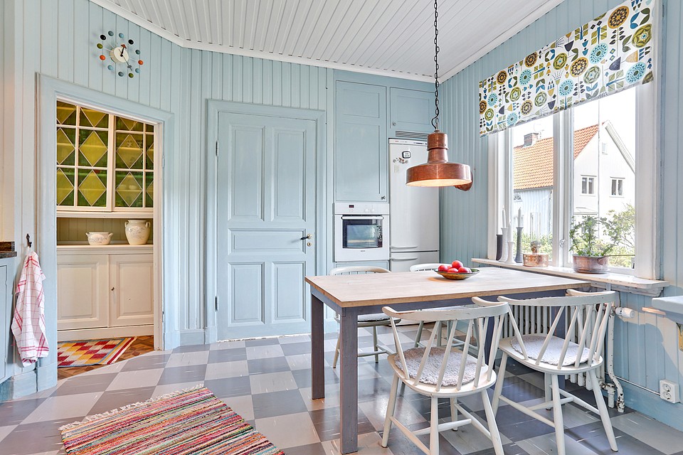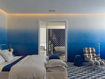 Malen Sie die Wände in blau sind nicht von vielen gelöst. Eine solche Lösung ist nur für einen großen Raum geeignet.