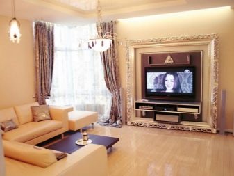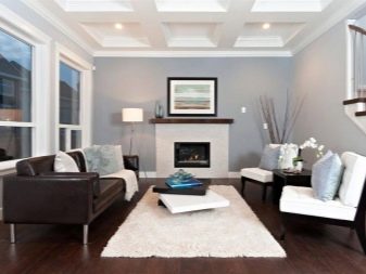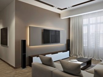 In kleinen Wohnzimmern ungeeignet, tiefe und dunkle Farbtöne zu verwenden.wenn sie in Solo-Version gehen. Sie überlasten den Raum stark und erzeugen eine schmerzhafte und schwere Atmosphäre im Raum. Im Vergleich zu einem großen Raum erfordert es ein helles, angenehmes Auge und eine neutrale Palette, wo mehrere Texturen auf einmal kombiniert werden.