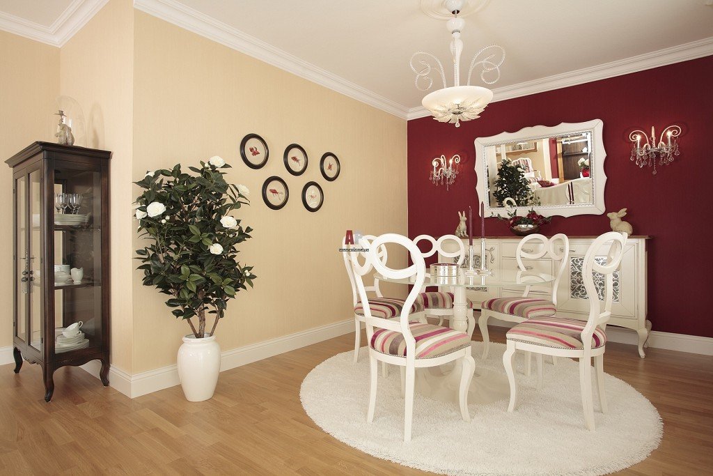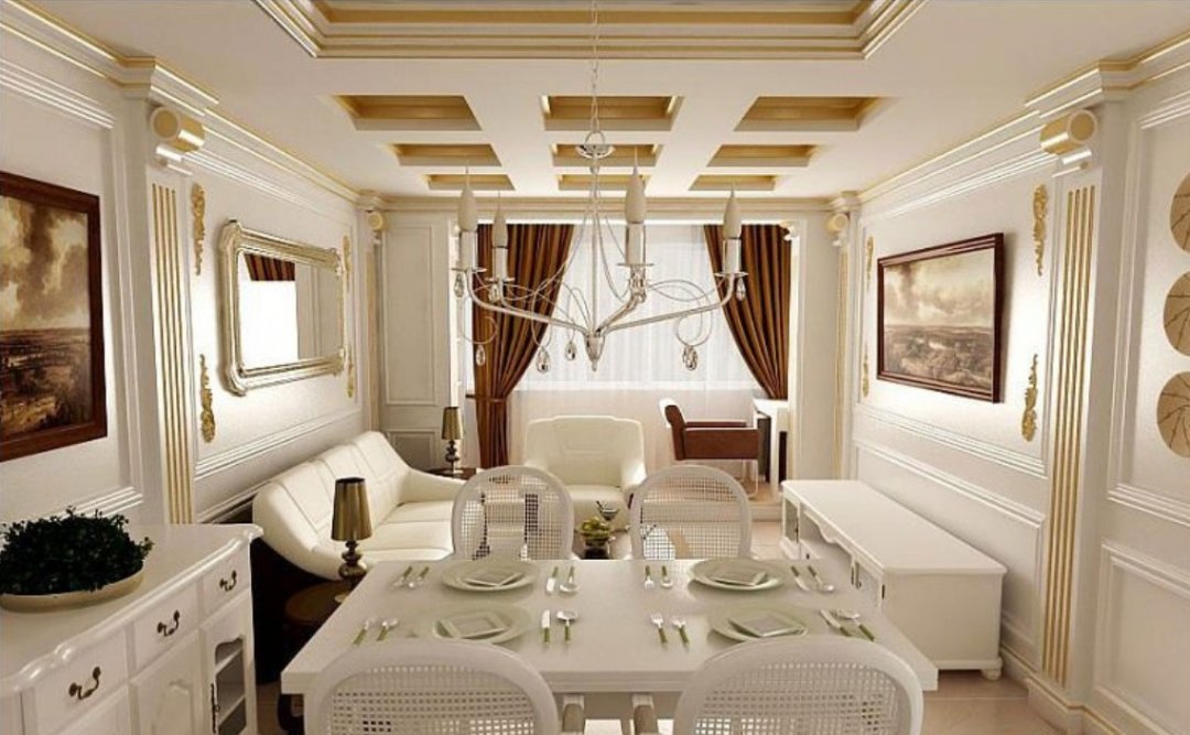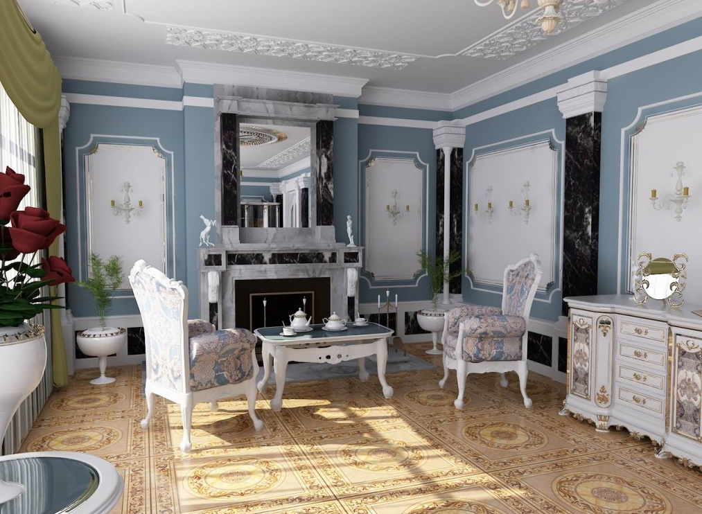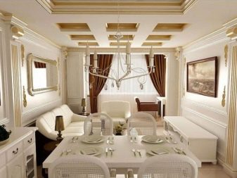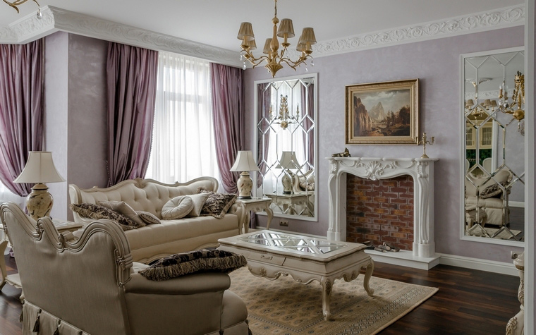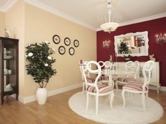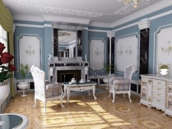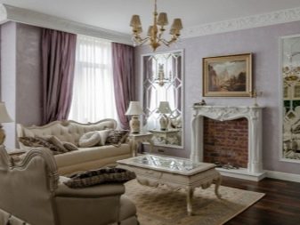 Anwendbare Malereiwände und wenn Sie einen Raum im neoklassischen Stil machen, was eine Überarbeitung der üblichen Komponenten des Interieurs mit den aktuellen Trends darstellt.Es ist geeignet für diejenigen, die schöne, gewürzte und teure Einrichtungsgegenstände und Möbel lieben. Es beinhaltet die Verwendung von Stuck oder Spiegel in eleganten Goldrahmen, aber ohne Übermaß und als eine nette Ergänzung.