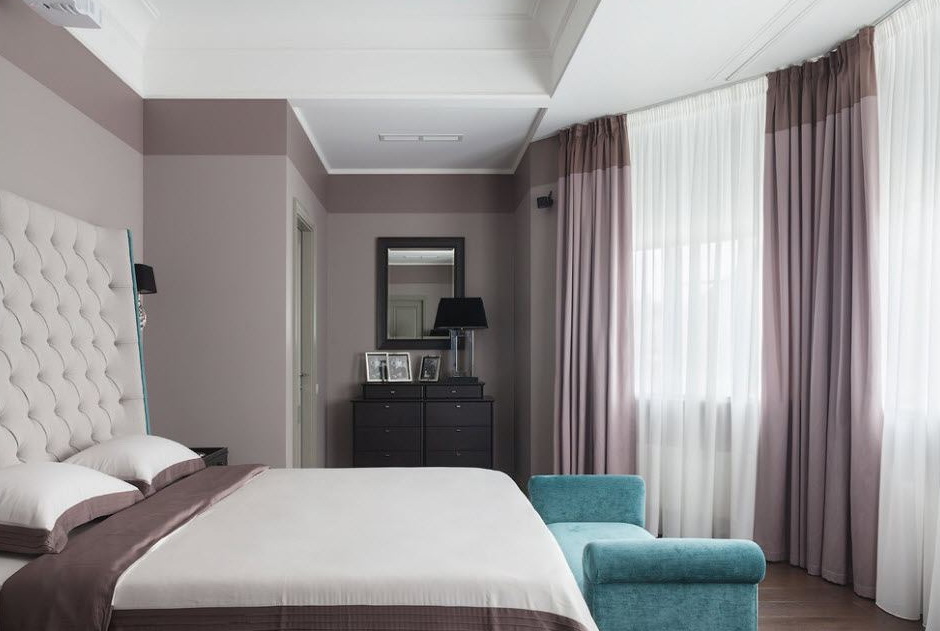 Im Schlafzimmer können Sie mehrere Farbtöne anwenden, wenn sie miteinander kombiniert werden.