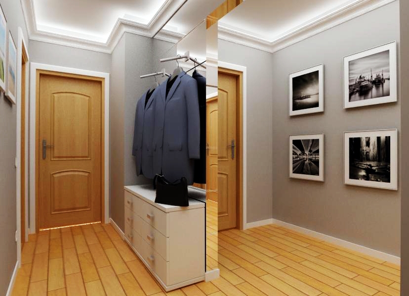 Die meisten der modernen Wohnungen haben kleine Flure in ihrer Umgebung, in denen Sie nicht zu viel entfalten, aber für diese Fälle haben die Designer viele interessante Lösungen gefunden. Zunächst lohnt es sich, ausschließlich auf feuchtebeständige Materialien zu achten, die keiner besonderen Pflege bedürfen. Dies gilt hauptsächlich für den Bodenbelag. In Bezug auf die Wanddekoration gibt es keine Einschränkungen, obwohl Experten nicht empfehlen, Tapeten im Flur wegen der schnellen Abnutzung dieses Materials zu kleben.