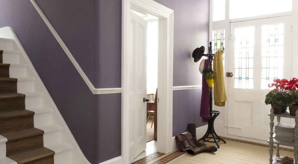 Für das Innere der Halle ist es ratsam, Farbe für Wände zu verwenden, da es gegen mechanische Beschädigung beständig ist, keine spezielle Pflege erfordert, leicht zu aktualisieren ist und in den meisten Stilrichtungen angebracht ist.