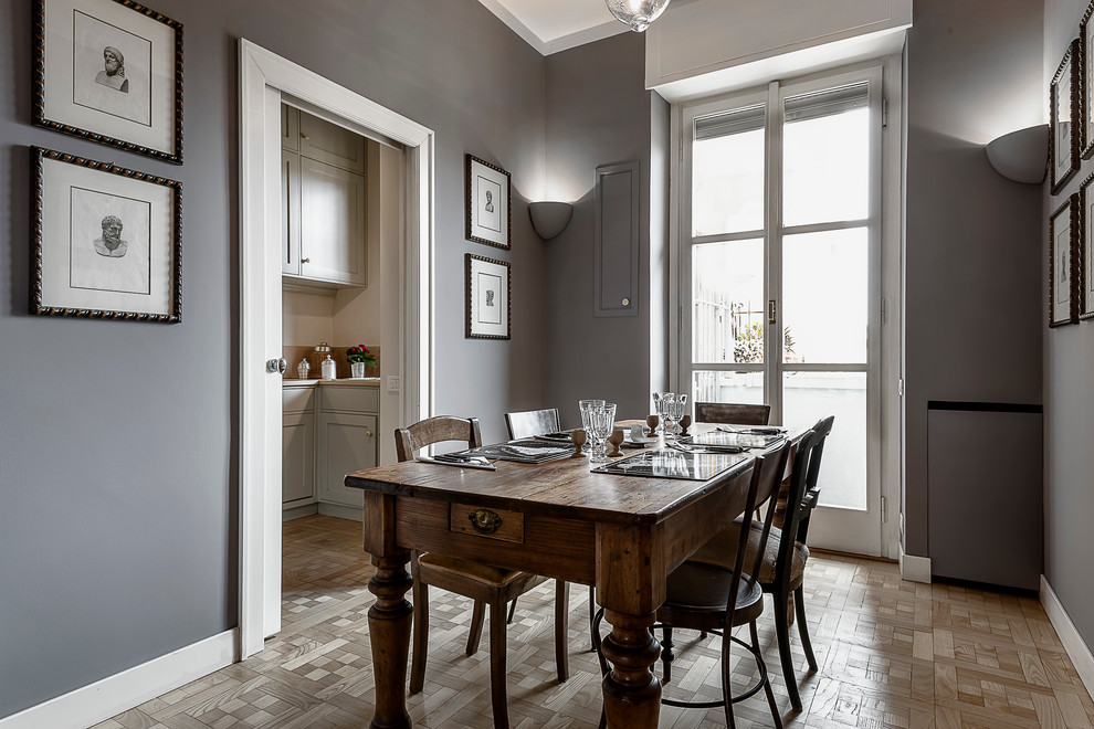 Meistens wird diese Methode der Innenwanddekoration im klassischen Stil verwendet, wenn Sie die Wände in einer einheitlichen Farbe malen möchten. In diesem Fall kann die Farbe als eine unabhängige Komponente oder als eine zusätzliche Beschichtung auf der Oberseite der Tapete oder des dekorativen Putzes wirken. Der Klassiker benötigt jedoch viel Platz und viel Licht, was in kleinen Räumen nicht angebracht ist.