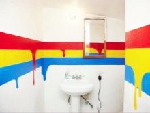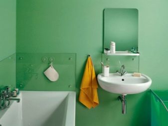 Wie für das Badezimmer sind die Wände mit Acrylfarben bedeckt. Sie kneten zusätzlich für die Zuverlässigkeit Antiseptika und Substanzen, die das Auftreten von Schimmel und Mikroben verhindern.