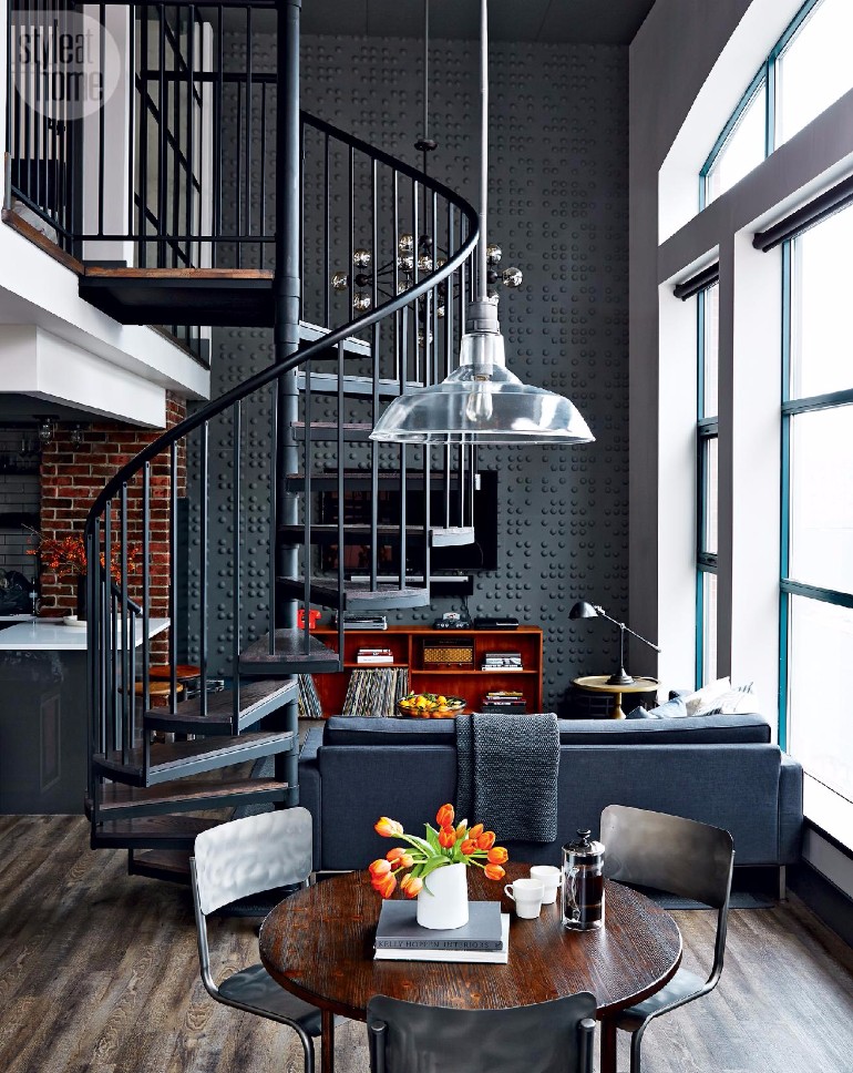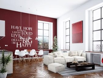 Für den Loft-Stil ist es besser, eine Farbe aus Terrakotta, Dunkelgrau, Dunkelblau oder Burgunder zu wählen. Perfekte Lackierung direkt auf dem Ziegelstein. Moderne Ideen suggerieren Innenarchitektur in helleren Farben, mit kreativen fluoreszierenden Zusätzen, mutige "saure" Kombinationen.