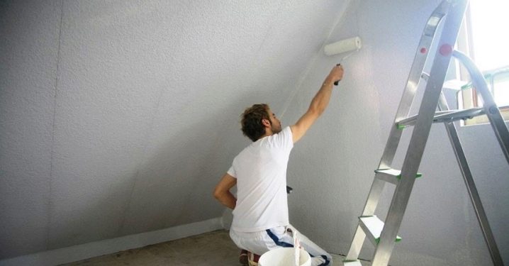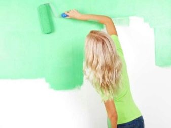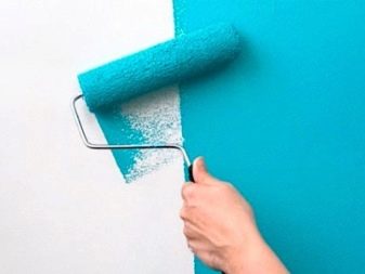 Nachdem Sie alle vorbereitenden Schichten angewendet haben, müssen Sie einen Tag warten. Nur dann wird es möglich sein, sich zu färben. Zuerst ist es notwendig, die Farbe mit einem Pinsel aufzutragen, und bereits für die zweite Schicht lohnt es sich, die Walze zu verwenden. So werden die Wände gleichmäßiger gestrichen und die Farbe sparsam verbraucht.