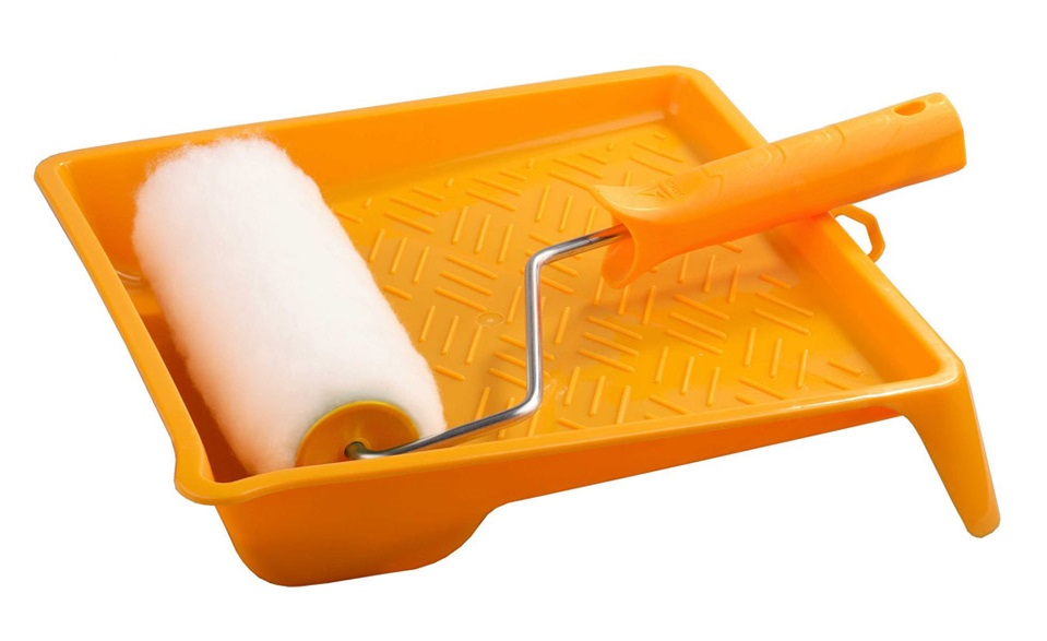 Es ähnelt einem Becken mit einem gerillten Tablett. Die Farb- und Lackzusammensetzung, in die die Walze getaucht wird, wird hineingegossen. Der gewellte Boden ist notwendig, damit das Werkzeug gut mit Farbe getränkt werden kann und die Zusammensetzung gleichmäßig aufgetragen werden kann.