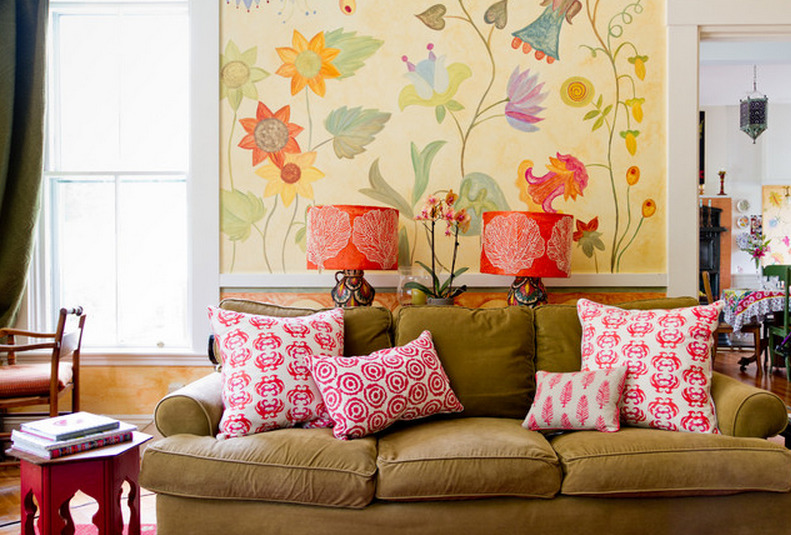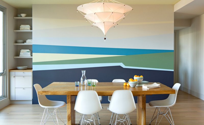 Die großen Vorteile der hausgemachten Wandmalerei sind auch die Tatsache, dass sie nicht nur die kühnste und hellste Art ist, Wände zu dekorieren, sondern auch die schnellste und wirtschaftlichste.