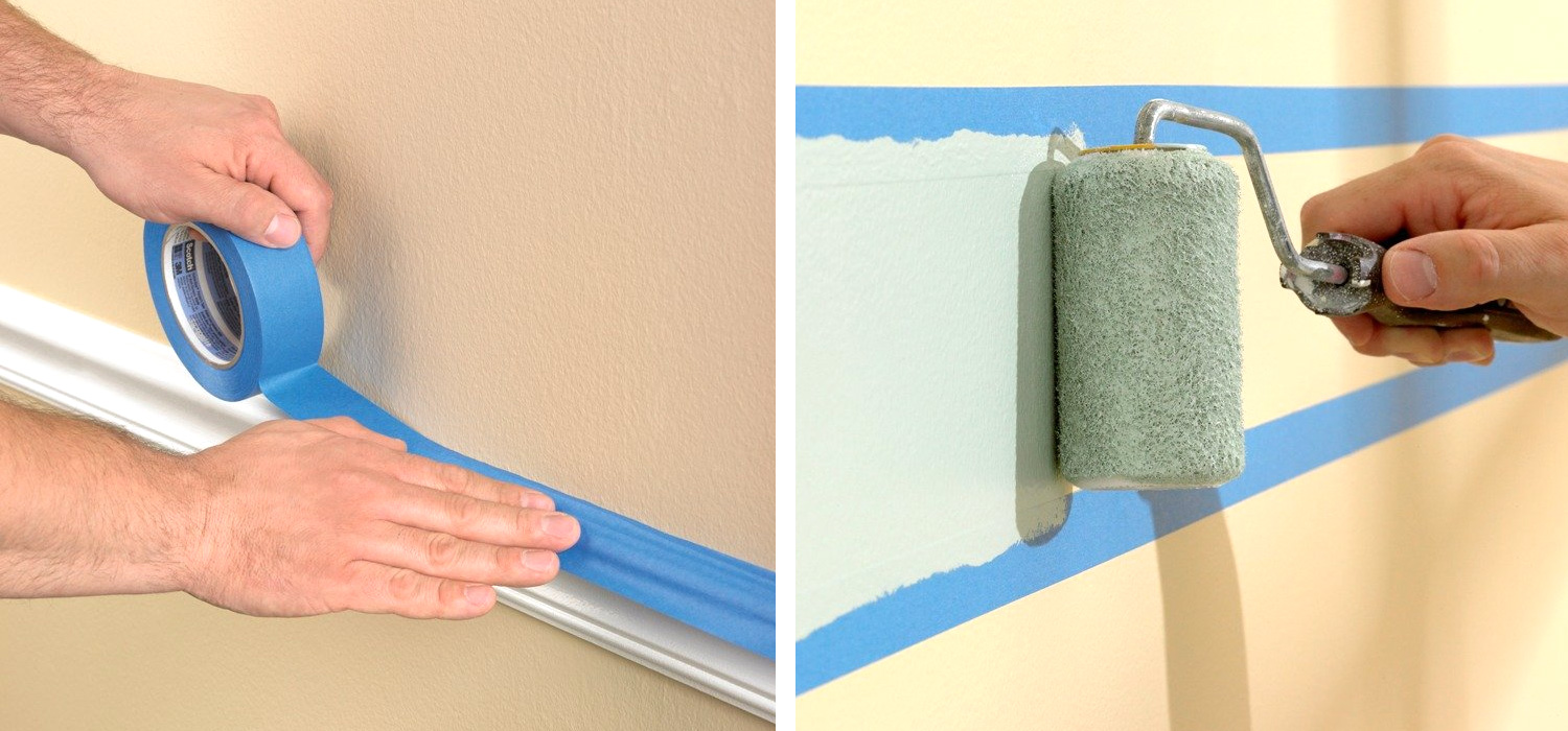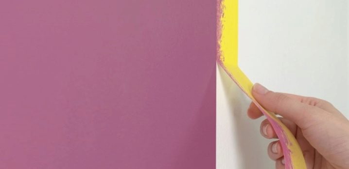 Es wird oft in der kombinierten Färbung von dekorativen Elementen verwendet. Es ist auch notwendig, die Wände während der Bemalung von benachbarten Bereichen mit einer anderen Farbe von sich selbst zu schützen.Dies ist eine ausgezeichnete Lösung, um die Kombination verschiedener Farben innerhalb einer Ebene zu vereinfachen.