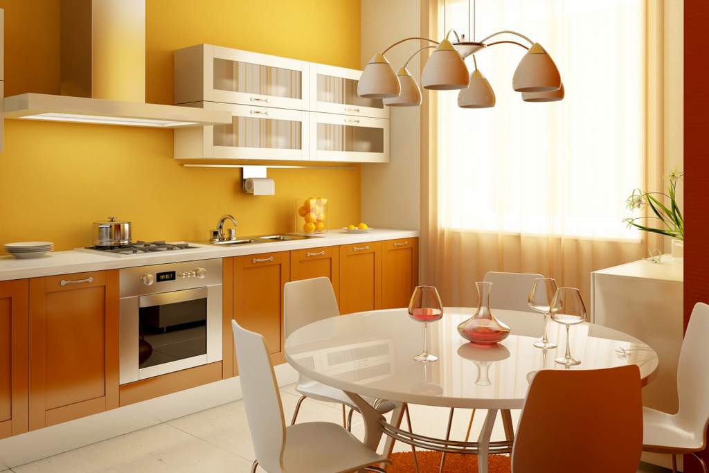 In der Küche bevorzugen sie die Verwendung von Glanzfarbe, besonders wenn die Wände vorher ausgerichtet und mit Kitt bedeckt wurden. Aber wenn die Wände in der Küche nicht völlig glatt sind, dann sollten Sie matte Beschichtungen verwenden. Nach dem Anstreichen der Wände der Küche ist es notwendig, die Türabsätze, Fußleisten und Rahmen zu reinigen.